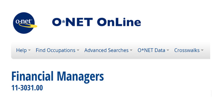 ONET lists the typical years of training to become established. Financial Managers show an SVP of 7–8 (high professional skill; >8 is the highest). Use ONET as a starting point for occupation research. Then check if your pay is in the top 10% (≥90th percentile) under Wages & Employment Trends, which pulls BLS data.